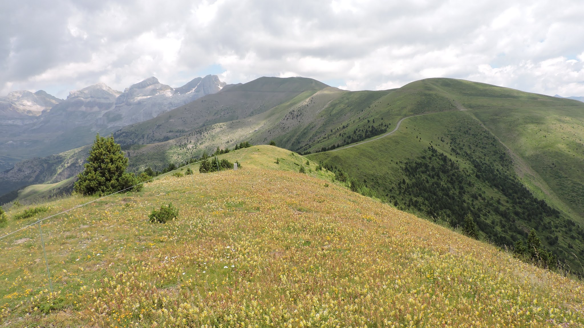 Tras picotear un poco y beber algo prosigo con la ruta: me voy hacia el pico de las Blancas. Así pues, sigo por el suave cordal pasando por el collado de las Blancas (1.986 m) y después conecto de nuevo con la pista.
