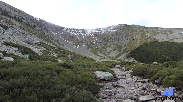 Vamos subiendo poco a poco y sin demasiados apuros; la senda está fabulosamente trazada y no se hace incómoda "pese a estar en medio del pedregal". Además, por momentos, la senda nos acerca a otro de los circos glaciares de la montaña: el de San Gaudioso (a nuestra izquierda).