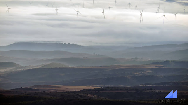 Pero antes, una paradita para disfrutar de las vistas hacia el valle del Ebro desde un pequeño mirador que hay junto al Santuario. Por ahí andará nuestra casa... debajo de la niebla.