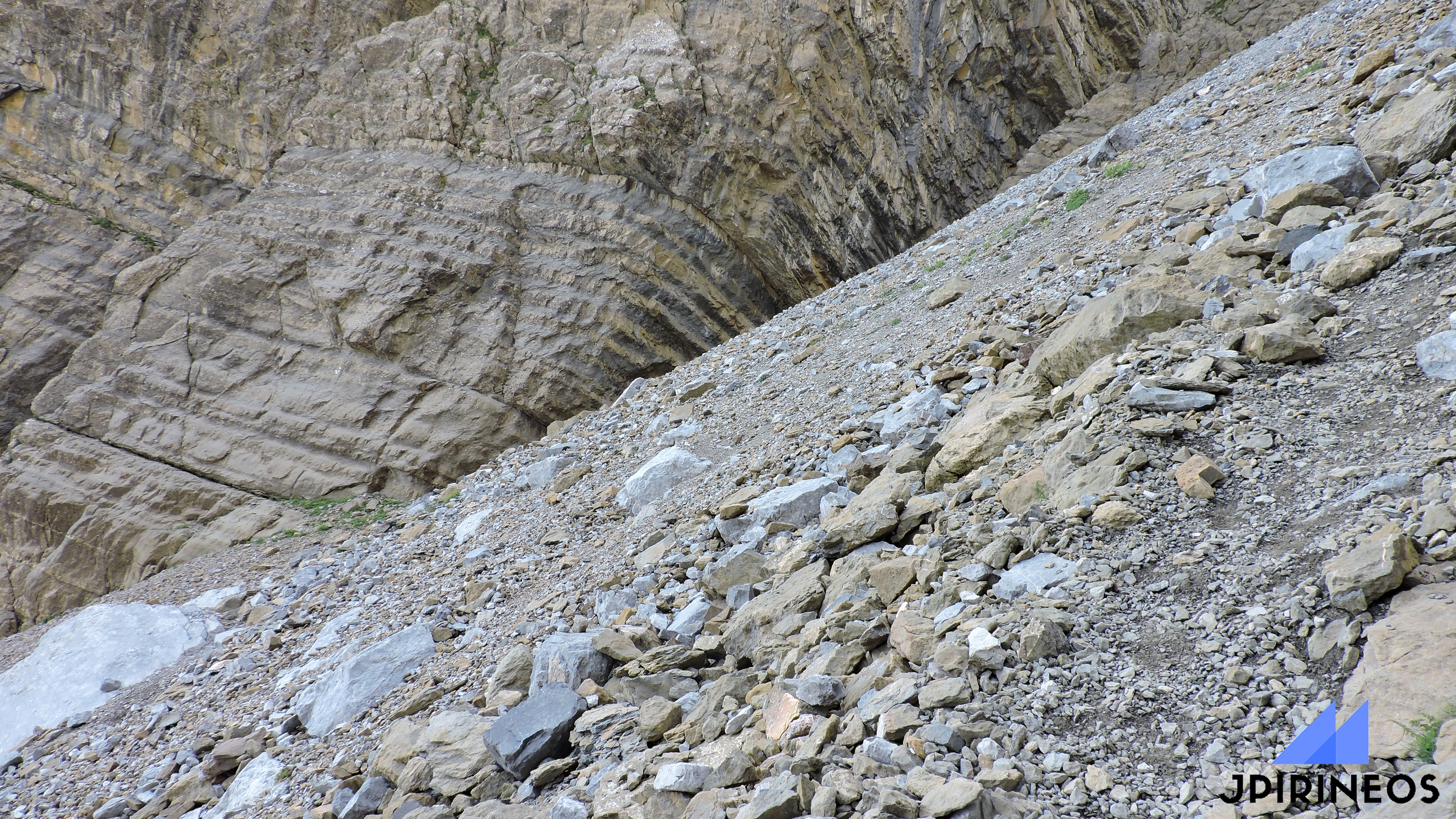 Así pues, entro en la canal y empiezo a ganar altura (S), siempre muy atento de no perder la senda, que discurre pegada a la pared de la derecha. Serán casi 400 metros de desnivel los que ganaré por aquí: es un tramo exigente, pero no tanto como parecía.