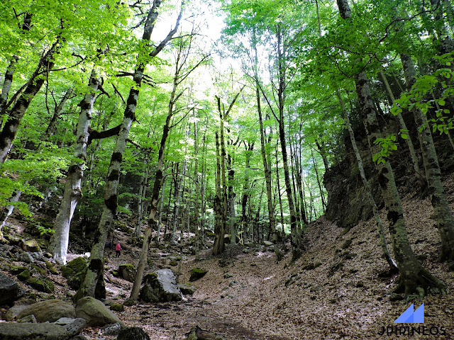 Y, tras asomarme a alguno de los miradores de esta cascada, continúo remontando el valle, internándome ahora en el famoso "bosque de las Hayas". Se trata de un hayedo muy bien conservado y con ejemplares de gran porte que proporcionan un fresquito muy agradable.